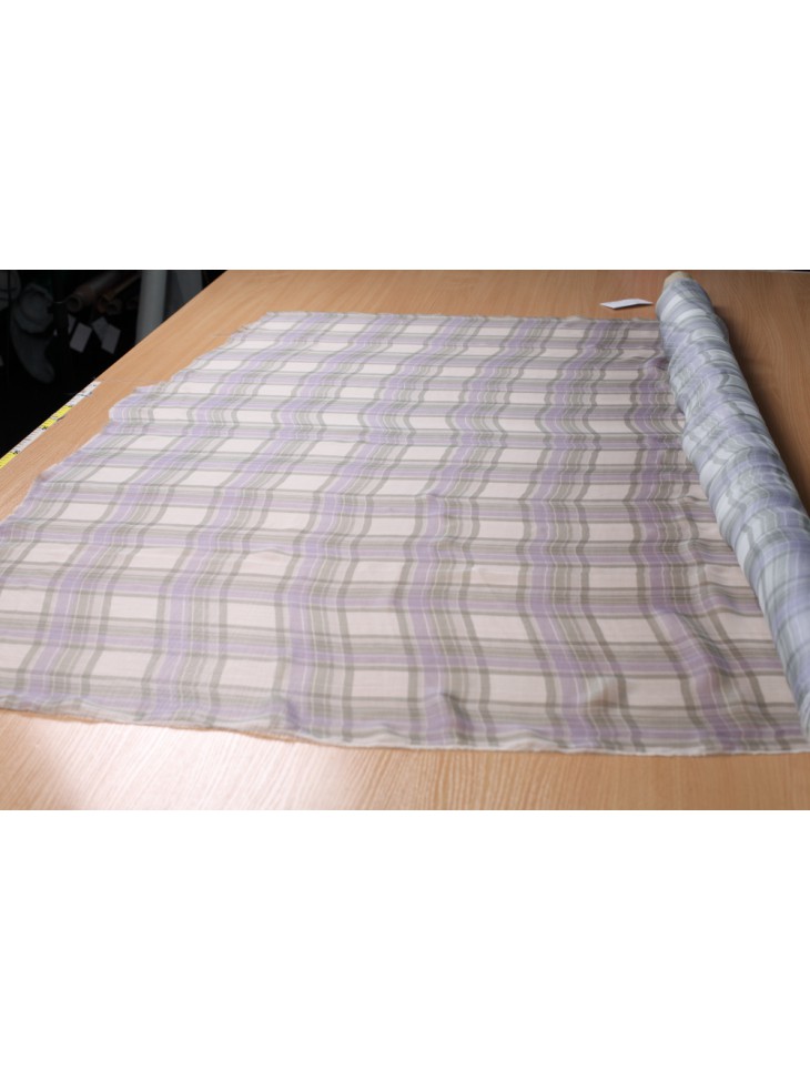 Bedruckt mit recht großen Quadraten, Farben: sehr helles Grau, Grünlich, Lila
