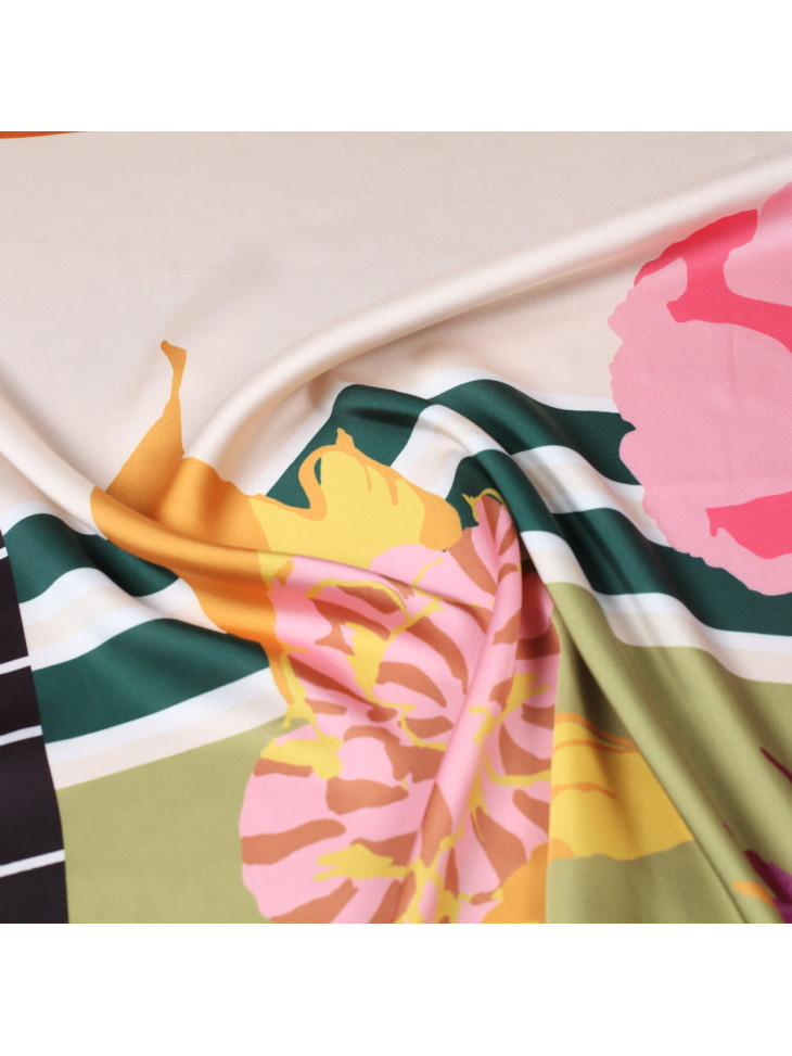 The fabric is very stretchy, woven with silver lurex