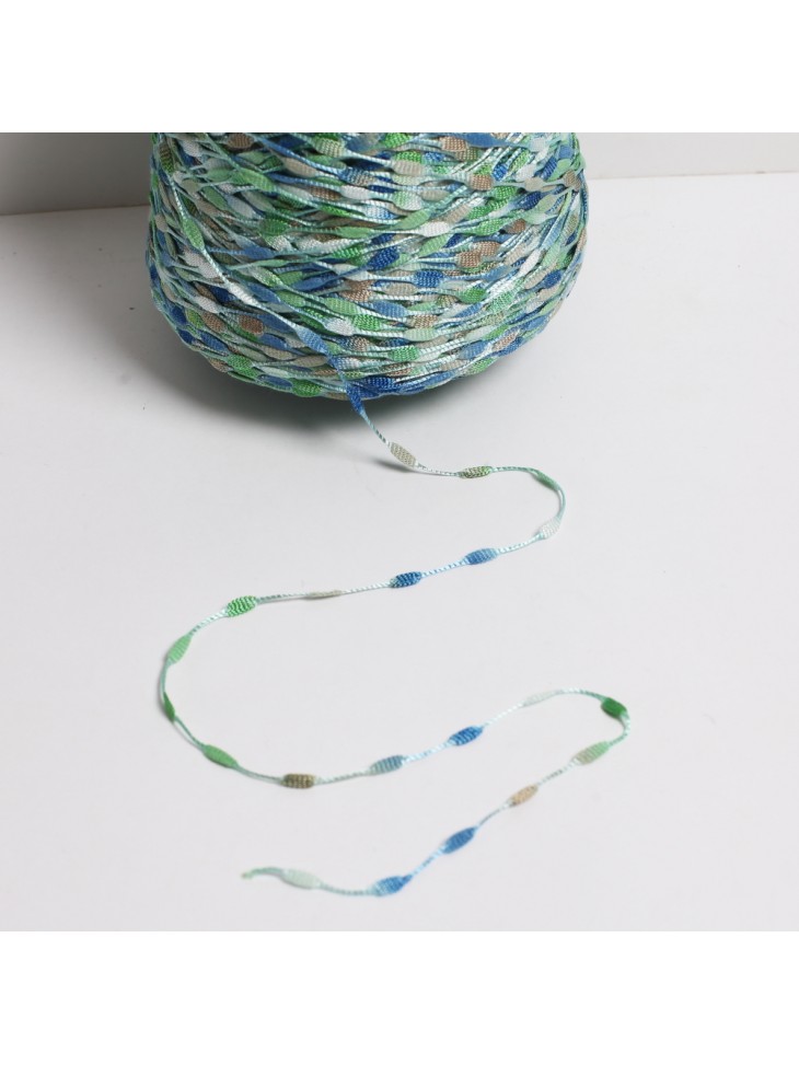 Textured decorative thread. Shiny, suitable for adding to other threads and knitting alone.
