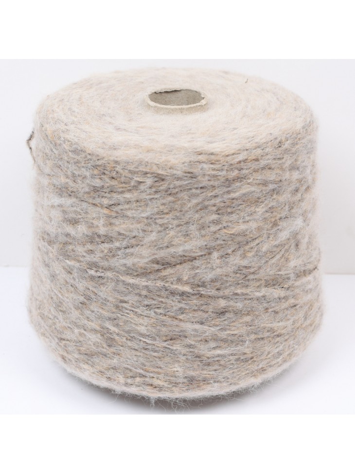 Gładka włóczka, teksturowana, z brokatem i rzadkimi tweedowymi węzłami.