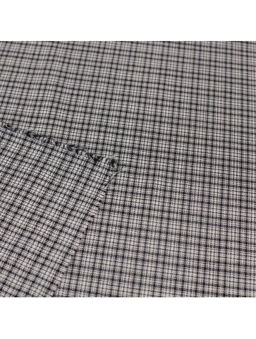 Kolorystyka ecru, biel i czerń, drobna kratka