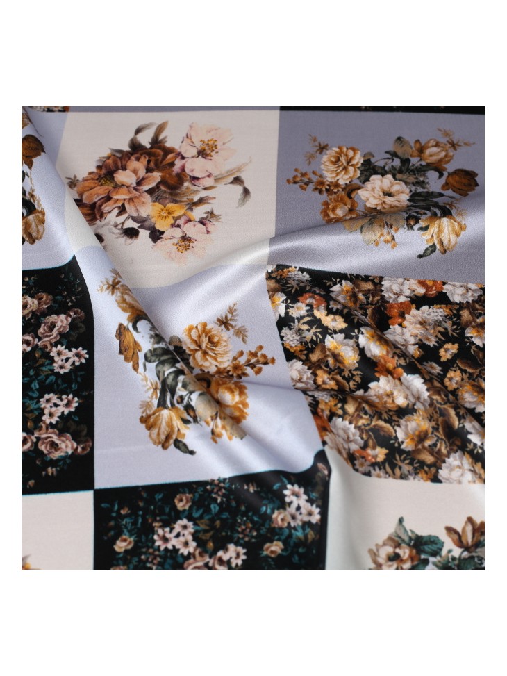 Satyna jedwabna w kratkę z elastanem